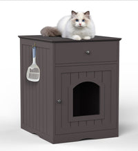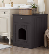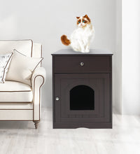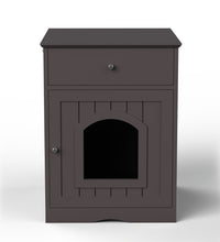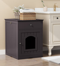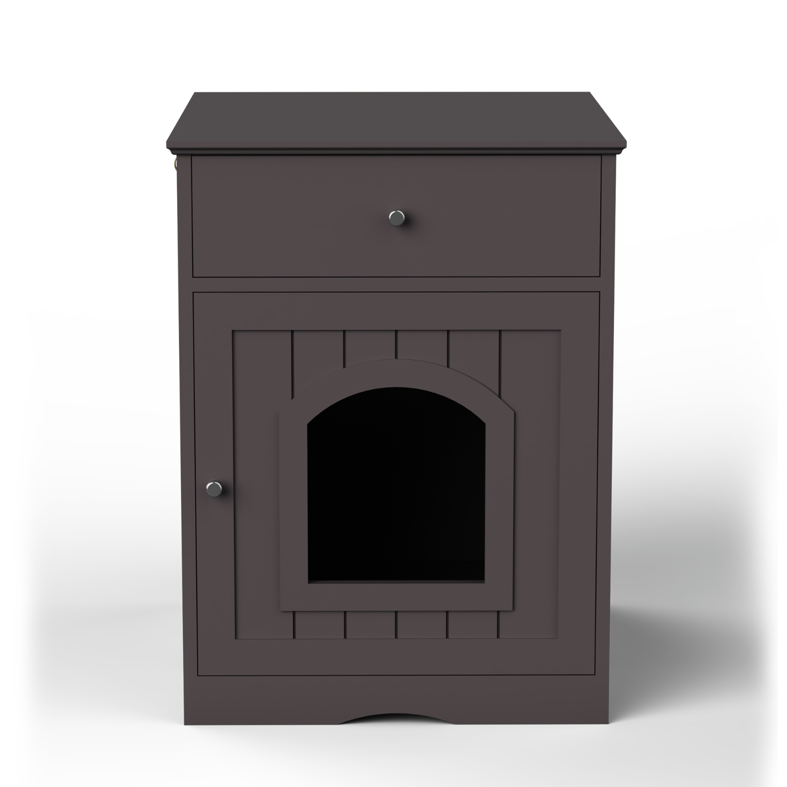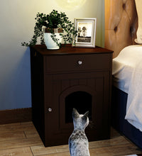 Wooden Pet House Cat Litter Box Enclosure with Drawer, Side Table, Indoor Pet Crate, Cat Home Nightstand (Brown)